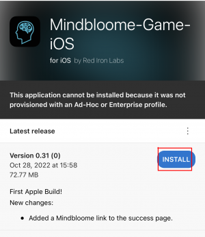 Note: If this is a restricted application (i.e. Mindbloome) you may need to wait for us to confirm your device on the back-end.